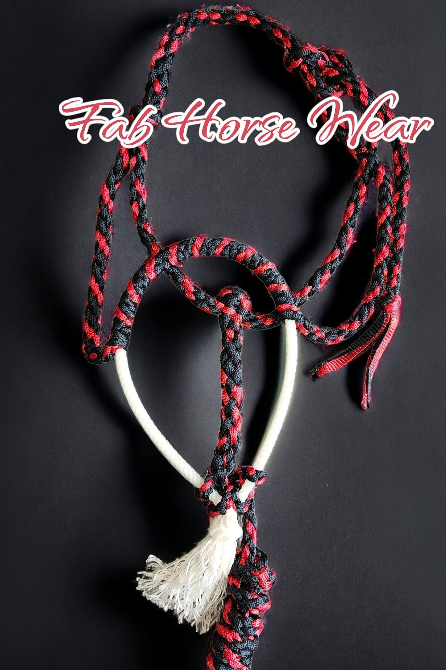 🐴 Product Highlights: - Hand-braided from 1,200 lb test-rated mule tape—strong, lightweight, and flexible - Reinforced with a lariat rope noseband for enhanced control and structure - Includes a matching 8-foot lead for a cohesive look and function - Tight 6–12 strand design ensures form, strength, and style - Dyed by hand—each one uniquely crafted with pride in the great state of Michigan. Perfect for everything from trail rides to show days, this halter combines practical strength with handcrafted flair—an everyday essential that wears beautifully over time.